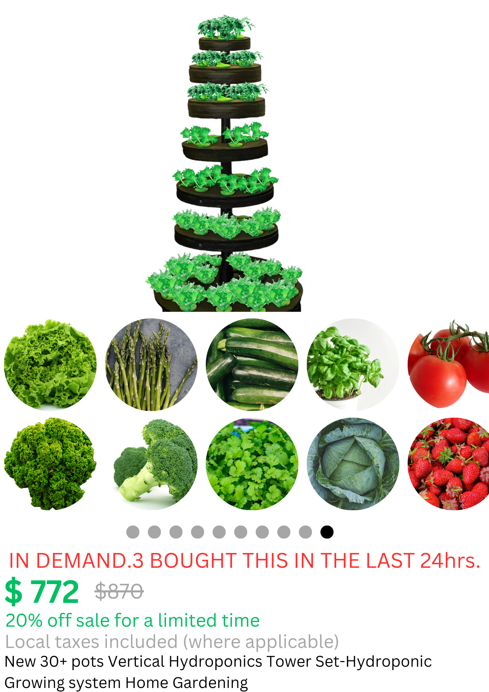 Extend to 10 feet, Solar-Powered Growth, 100 Percent Pest-Resistant, and Up to 300 Planting Holes per tower for Your Flourishing Harvest.